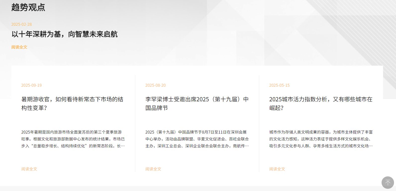 在“趋势观点”与“新闻动态”栏目中,默认状态下以简洁的文字信息呈现。
